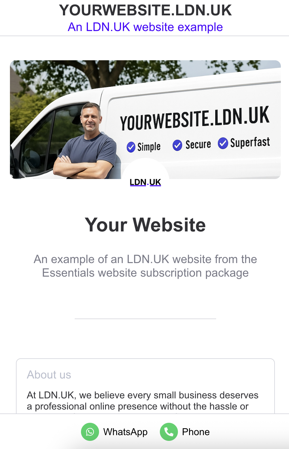 Website-as-a-Service (WaaS) - All our website subscription packages include a domain name (or an ldn.uk subdomain), superfast hosting, built-in SEO - the full works for one monthly price.